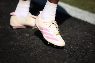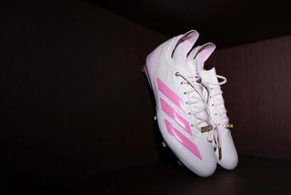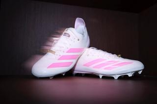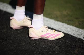 The Adizero Electric+ line is built for speed: lightweight synthetic and textile upper construction, a cleated outsole designed for traction, and a TPU heel clip for support. Hunter’s edition maintains those performance traits, while layering on more storytelling elements through color and detailing.