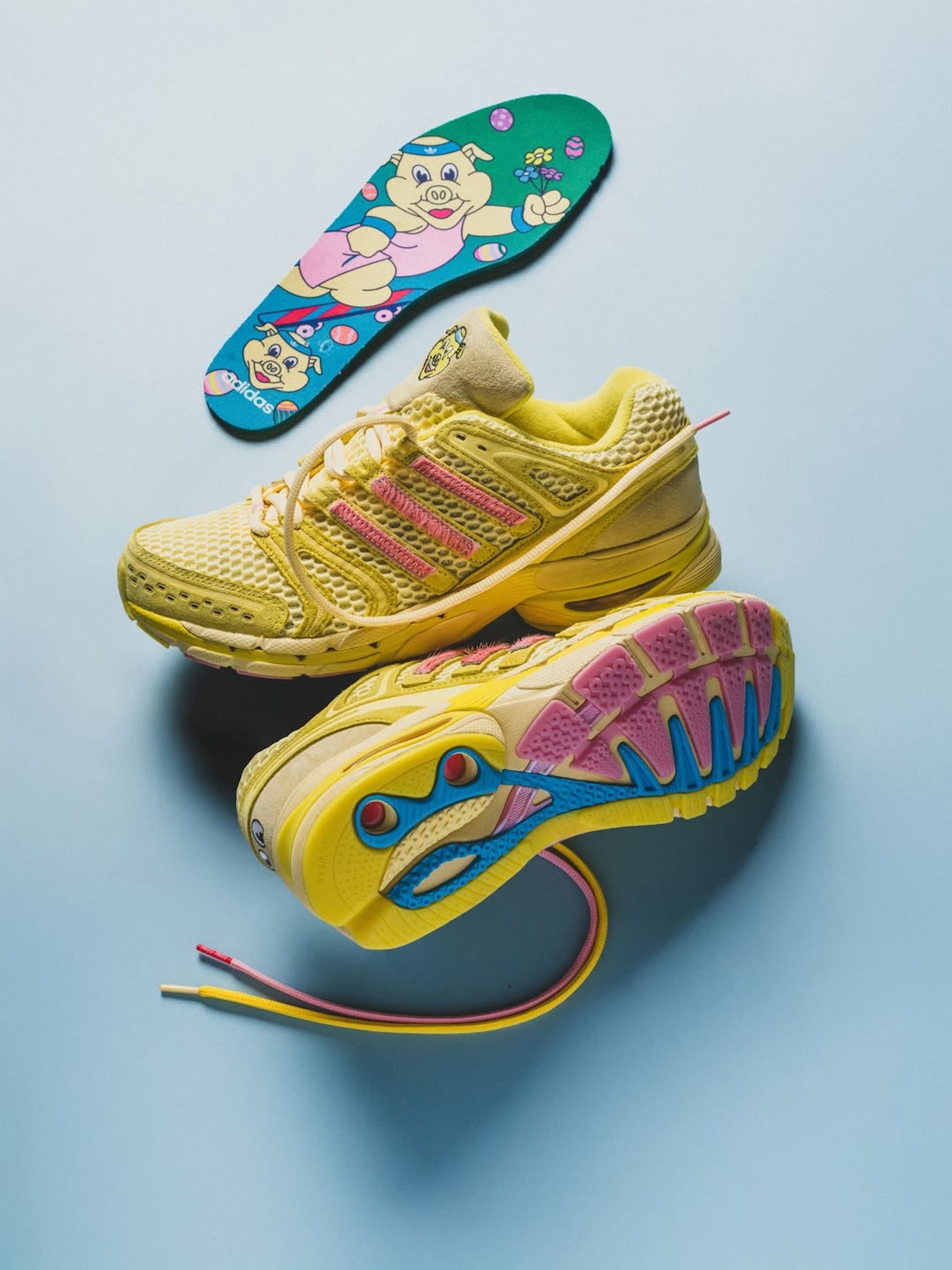 Continuing to tell the story of his alter-ego, Porkchop, the impending AdiStar Control 5 collection releases on Saturday, March 28. Three different color schemes draw inspiration from childhood friends—including "Cupcake" (green), "Cheeseburger" (yellow), and "Steve-O" (red). Each commemorative retro runner, which debuted in 2008, the same year UNheardof opened its doors in Cincinnati, is limited to just 2,500 pairs.