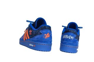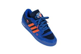 The “All for Cincy” adidas Forum Low embraces FC Cincinnati’s vibrant team colors through a premium mix of materials and detailing. Royal blue suede wraps the overlays and toe box, while darker navy panels with tonal script patterns add depth and contrast. Bright orange leather Three Stripes and Trefoil branding highlight the sides, matched by orange stitching and lace tips for a cohesive pop of color. Custom embroidery featuring FC Cincinnati’s winged lion appears at the heel, with “All For Cincy” stitched across the back tabs in old-English lettering. Inside, the pair features bold co-branded insoles with graphic artwork celebrating the city’s spirit, all resting atop a matching blue midsole to complete the design.