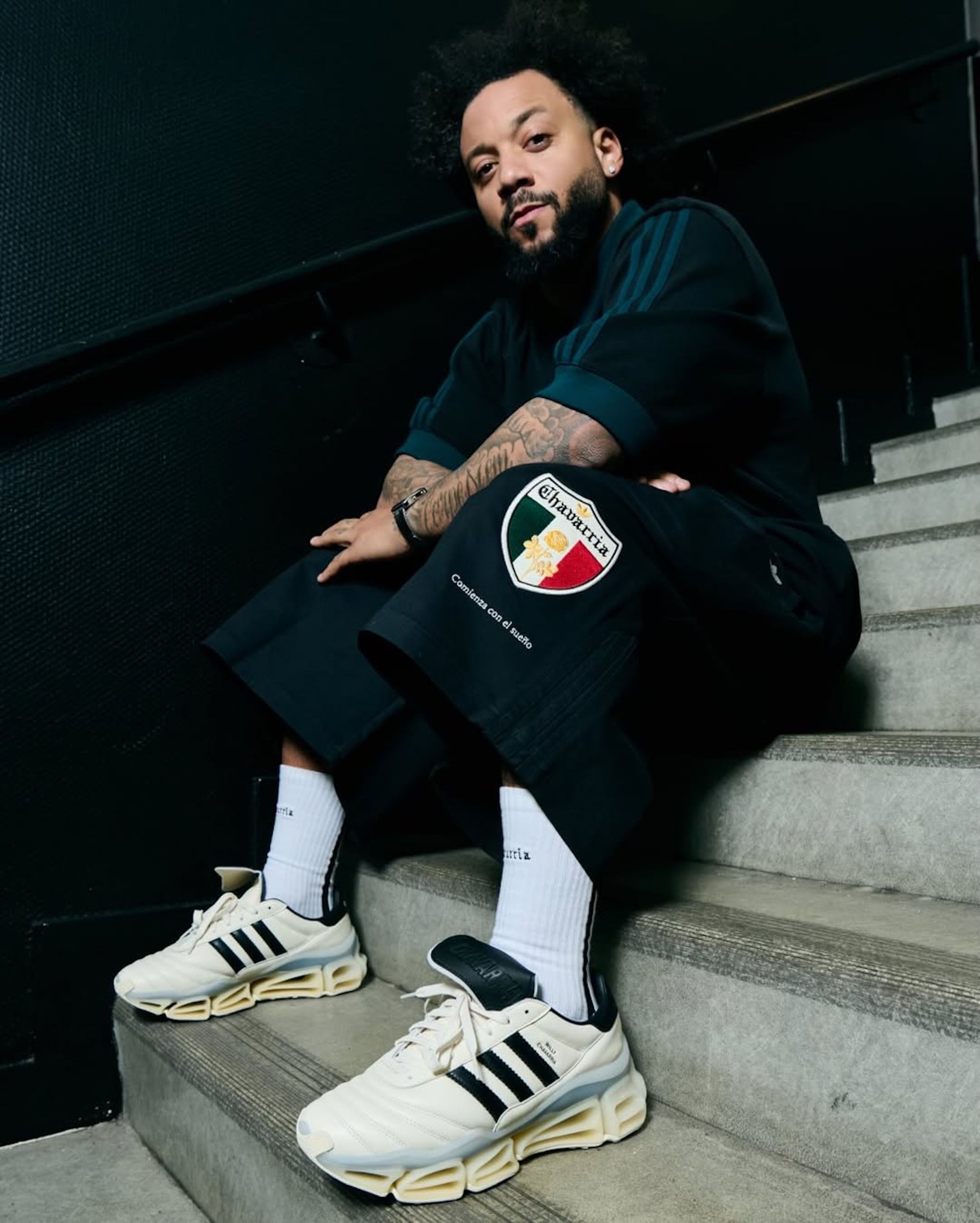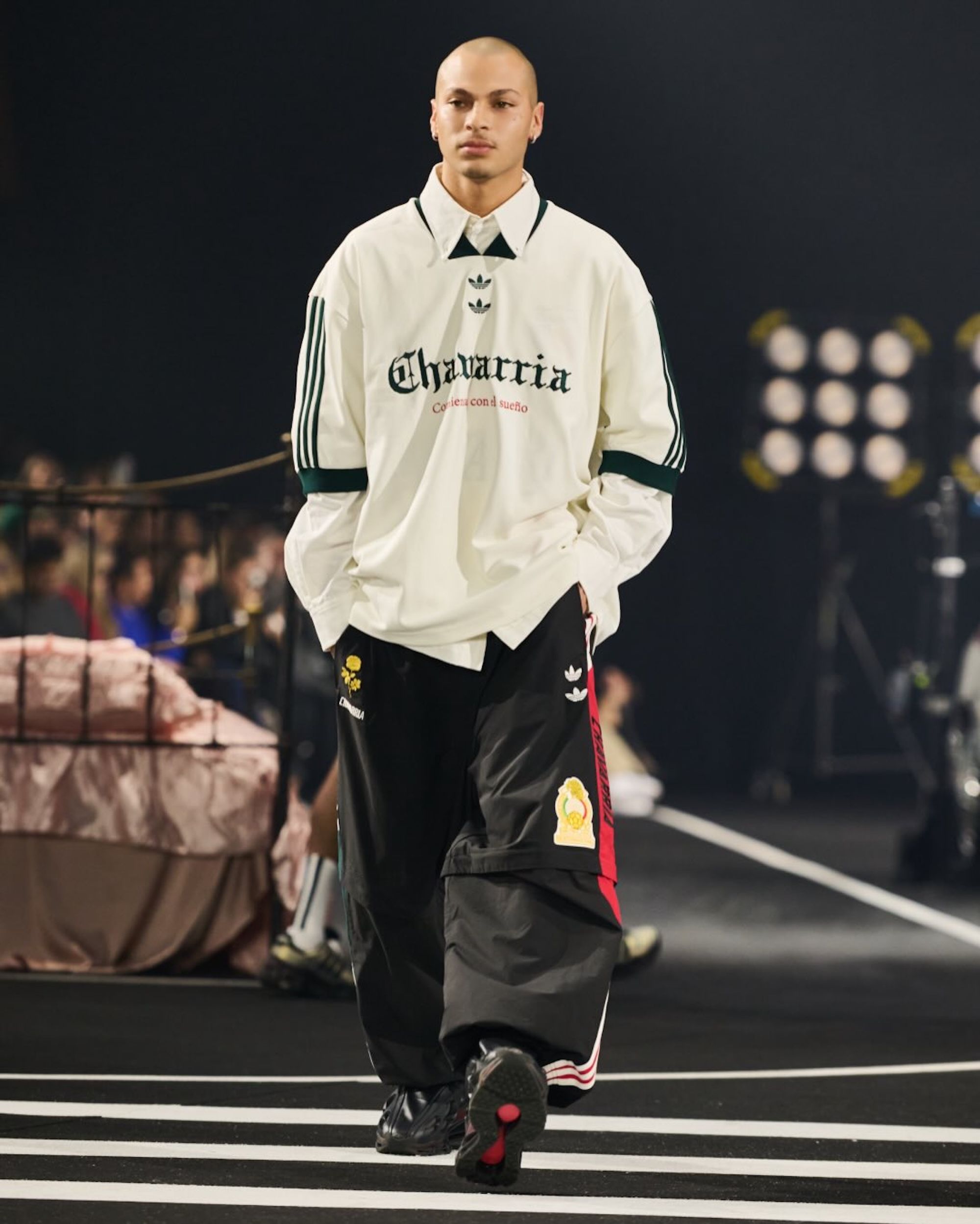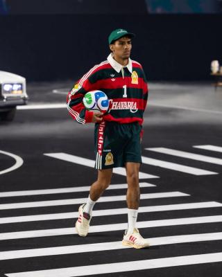 Willy Chavarria's decision to include elements from "the beautiful game" in his latest fashion show isn't random. His partnership with the Three Stripes grants him access to international footballers like Marcelo and Rodrigo Huescas. Additionally, it allows him to use emblems from the Federación Mexicana de Fútbol (FMF) in apparel, footwear, and accessories. This latter move coincides with adidas' build up to the 2026 FIFA World Cup™, a tournament that'll be partly-hosted by Mexico.