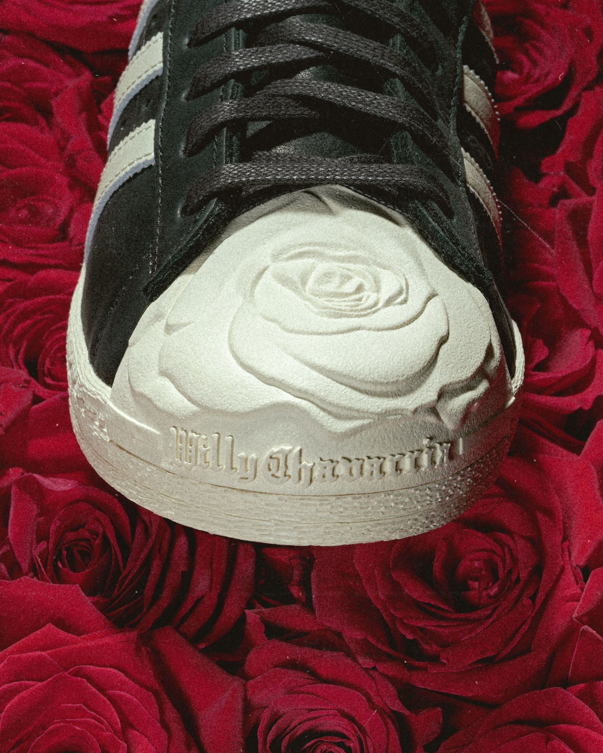 The "Love Prevails" adidas Originals range includes a handful of premium apparel designs and two fresh takes on the adidas Superstar. The iconic "shell toe" sees its rubber toe cap reworked with a new rose-shaped molding that helps carry out Chavarria's vision. Apparel pieces like bombers, crewnecks, and pinstripe tracksuits complete the collection, donning the designer's signature embroidery and artwork.
