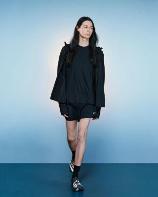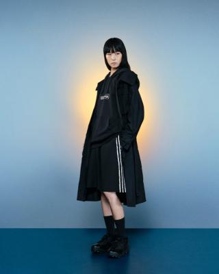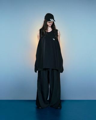 The apparel lineup focuses on shape over color, trading loud palettes for textural nuance and engineered construction. Padded bombers appear beside wide, flowing cargos, while raw-edge finishes and asymmetrical cuts introduce intentional imperfection. Select garments incorporate wired Three Stripes sculpted directly into the design, allowing each wearer to customize shape and drape on the fly.