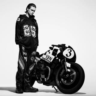 To bring this vision to life, Y-3 and NEIGHBORHOOD enlisted collaborators across disciplines: Wales-based artist David Gwyther (Death Spray Custom), Tokyo’s custom bike workshop Cherryscompany, and Italian motorsport icon Dainese. Each played a distinct role in shaping the collection’s creative and technical direction, grounding it in the authentic language of motorcycle culture.