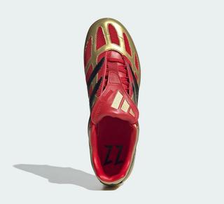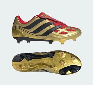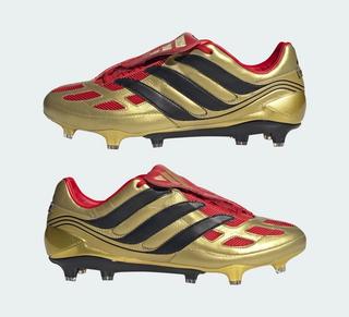 Officially clad in a "Gold Metallic/Core Black/Collegiate Red" color scheme, the boot originally launched as an exclusive pair for the Frenchman to commemorate his FIFA World Player of the Year award (now FIFA Best). Zidane eventually wore the eye-catching Predator Precision in a friendly against Germany on Feb. 27, 2001.