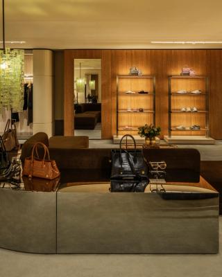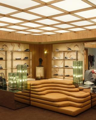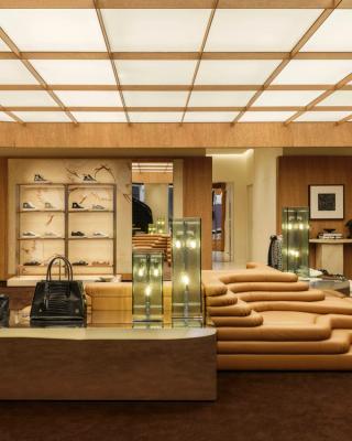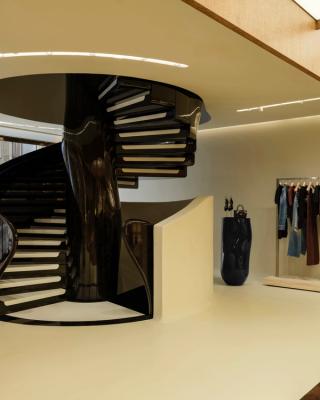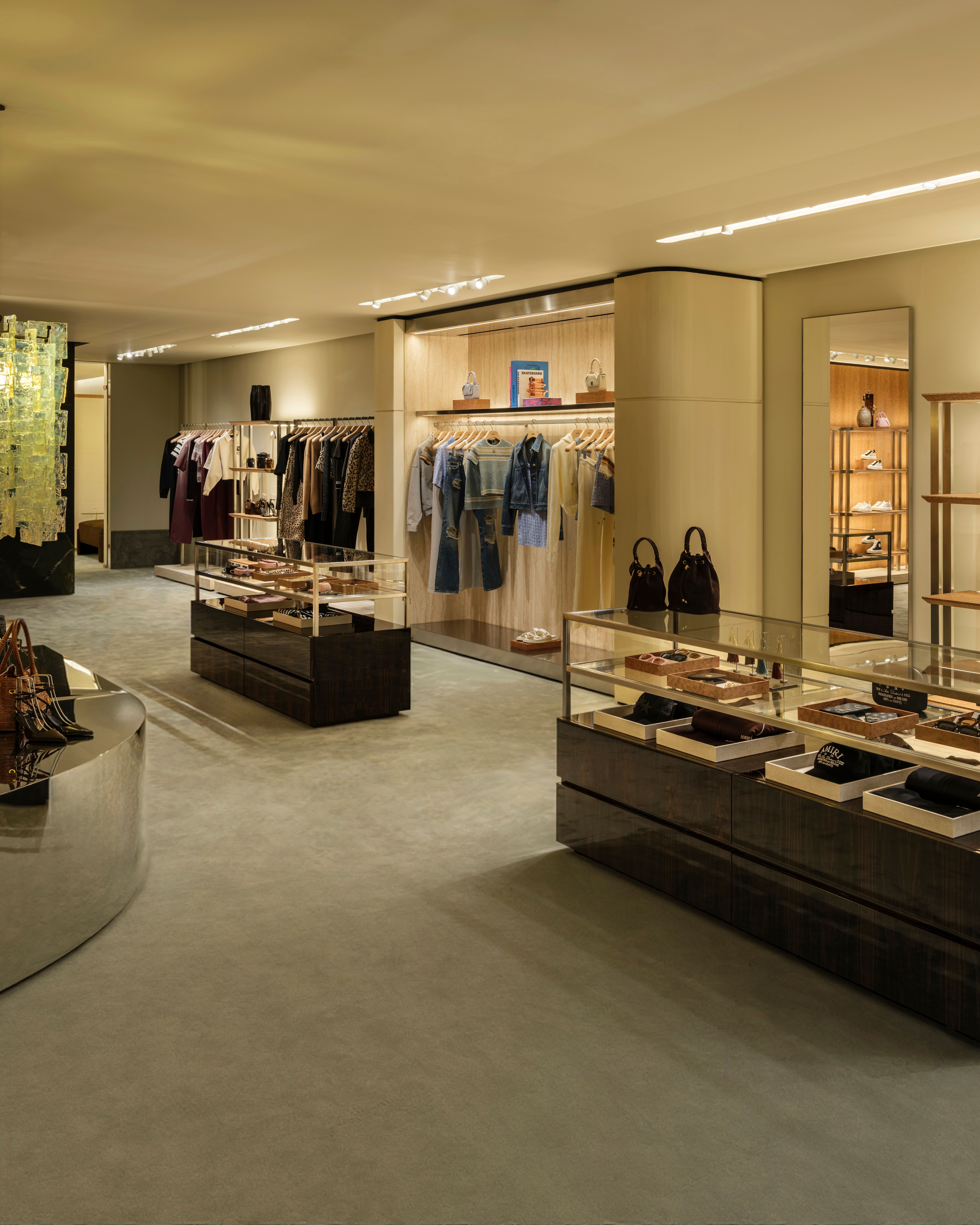 Designed under the direction of founder and creative director Mike Amiri, the two-floor flagship houses the brand’s full range of men’s and women’s collections, including ready-to-wear, footwear, and accessories. The interior leans into a cinematic approach, with each section designed to feel like a distinct setting.