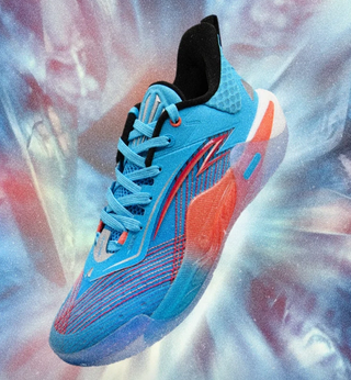 Supporting the bold design is ANTA’s signature SpeedForm construction, built to balance lightweight comfort with locked-in support for quick cuts and fast transitions. The icy blue upper is detailed with stitched patterns and speckled overlays, while the semi-translucent outsole hints at both chill and energy through its frosted-to-flame gradient effect.