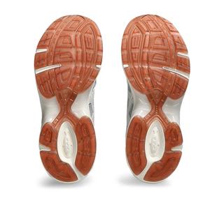 Breathable mesh bases set the stage for a number of synthetic panels throughout the upper. Hits of off-white claim real estate across the top-half, but play a supporting role to the titular 'Cloud Grey' hue. Underfoot, the GEL-assisted sole unit further indulges in clean look that allows the upper to revel in the spotlight. GEL units, mid-foot shanks, and traction, however, inject some personality into the sneaker–in particular the running-informed, semi-translucent outsole with its gum brown finish.
