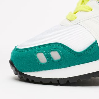 Keeping with the OG makeup, a white textile base is lathered with white leather and suede overlays at the midfoot, and a mid-green at the toe and heel. The iconic split tongue rocks a vibrant yellow, a color that also pops up on the heel, laces, insoles, and outsole, while black mesh at the midfoot oozed vintage vibes. Completing the diesng is a two-tone midsole, black midsole cap, and predominately black rubber outsole.