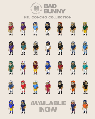 Stay tuned for more details. Bad Bunny and the NFL's merch capsules are available for pre-order via Fanatics.com, NFLShop.com, NewEraCap.com, and elsupertazon.com. Limited availability will be offered at NFL Shop Presented by Visa at Super Bowl Experience Presented by Jersey Mike’s in San Francisco. Select product will also available on international NFL Shop sites.