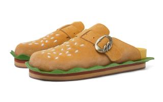The BBiMP Burger Mule's design is a playful homage to the classic fast food staple. Its upper mimics a sesame seed bun, complete with layers representing lettuce, cheese, and beef. This whimsical design not only captures the look of a burger but also brings an element of fun and nostalgia to footwear, transforming an everyday object into a piece of wearable art. Each pair is presented in a special edition box, further elevating the unboxing experience to mirror the moment of unboxing a freshly prepared Big Mac.