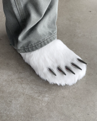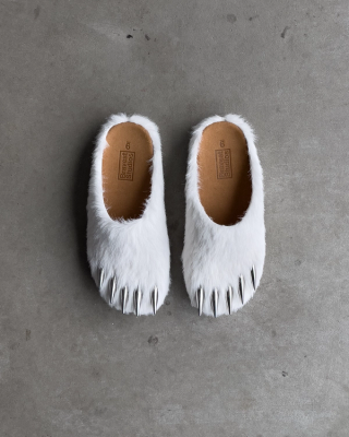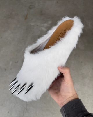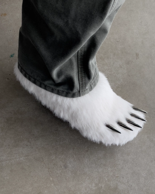 The "Polar" edition elevates the concept with its luxurious white high-quality faux fur, embracing the pristine and majestic essence of the polar bear. The signature feature, a set of "metal-esque" claws, boldly protrudes from the toe box, adding an element of untamed wilderness to the refined cork footbed. This daring combination of materials and motifs captures the imagination, offering wearers a chance to step into the role of the arctic predator in unparalleled style.