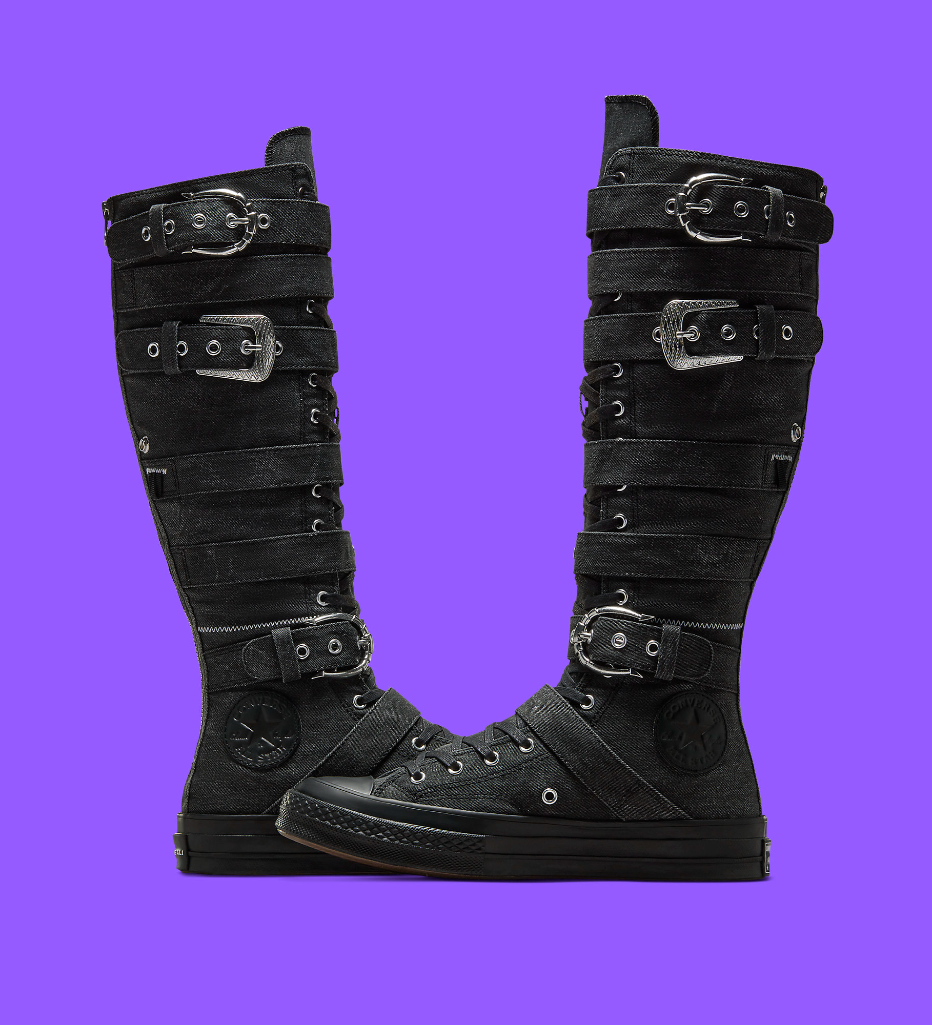One of the most striking aspects of this collaboration is the integration of Y2K style cues, a nod to the era that continues to influence fashion trends today. The knee-high extension of the Chuck 70 is a bold departure from its traditional silhouette, offering a statement piece that challenges conventional sneaker design. This daring transformation is complemented by practical details, such as a heel zipper entry, which ensures ease of wear while adding a modern touch to the overall design.