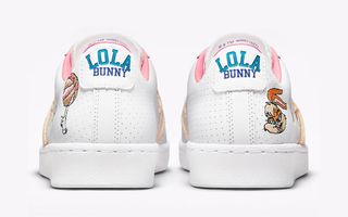 Not only does it arrive in a seasonal-friendly white leather construction, but it also arrives perforated for an ounce of extra breathability. The signature Star Chevron logo is finished in a furry material on each side, to channel the hare in question, with the lady herself sitting on the lateral ankles — a face on the right, a spinning ball on the left. Other details include “TUNE SQUAD” printed lateral in gold foil, “LOLA BUNNY” stamped onto each heel panel, candy pink liners, and cartoonized Converse logos on the insoles.