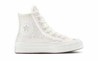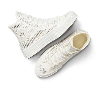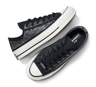 Akin to a Chuck 70 De Luxe Squared project from February 2024, the latest Converse offerings are covered in hundreds of shimmering silver stones. Everything from the pairs' classic canvas uppers to the star logo on the high-top opt for the premium update. A special set of lace dubraes also appears across both pairs, bringing another elegant touch to the storied silhouettes.