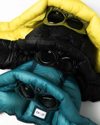 Down-filled nylon jackets arrive with interchangeable hoods (as evidenced by some campaign photography) that include C.P. Company's iconic goggles. Blue, yellow, and black finish appear on the D.D. Jackets, while the Shearling options see refined black ensembles.
