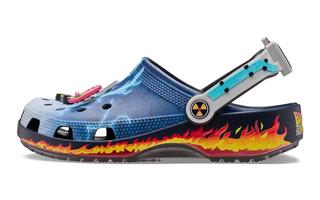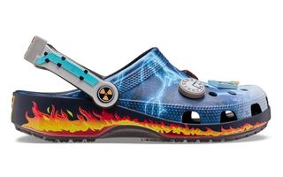 The beloved movie starring Michael J. Fox and Christopher Lloyd lends several of its visual cues to the laceless slip-on, creating a product that's sure to be enjoyed by numerous generations. The pair features flame graphics along its midsole, evoking images of Dr. Emmett Brown's DeLorean DMC-12 modified into a time machine. Other nods to the stainless steel vehicle arrive in the form of a flux capacitor and time circuits-shaped Jibbitz™ charms on the heel straps. Other detachable decorations reference Marty McFly's red vest and hoverboard, and OUTATIME California license plate.