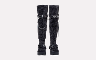 The tall design is adorned with a series of four new Jibbitz™ charms, 17 traditional Jibbitz™ charms, two chains, and two extra-large embellishments. Heart, star, and other shapes inject a punk aesthetic into the statement-making boots. Dual Crocs Comfort™ and slip-resistant outsoles join the mix, ensuring the Crocs product doesn't skimp out on reliable performance despite its firm positioning as a fashion-forward product.