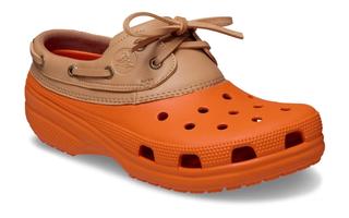 The model's lower-half follows guidelines set by the Classic Clog (which recently got the Superman-treatment), featuring perforations across the forefoot. This bottom-half takes on orange, brown, green, and black finishes to evoke imagery of classic footwear styles. "Sport Mode"-enabling straps around the heel are abandoned in favor of a familiar boat shoe collar-and-tongue setup. The leather components feature metal hardware and a lacing system that wraps around the collar, as do typical deck shoes. A bird's-eye view showcases Crocs' step-in comfort in all its glory, promising a plush ride whether out in the water or beachside.