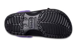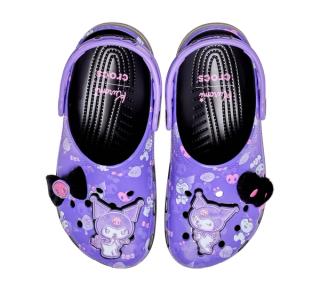 Infamously My Melody's self-proclaimed rival, Kuromi entered the scene in 2005. In a shorter time to her universe's main character, which has been around since 1975, the Mariland-native has exploded in popularity on a global scale. Her Crocs Classic Clog project sees a purple-and-black color scheme derivative of her mischievous, punk, scene, and goth-friendly look. The bio-circular Croslite™ upper dons an all-over print of Kuromi, Baku, and associated icons while Jibbitz™ charms recreate the white rabbit and a pink skull bow.