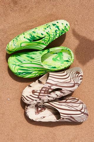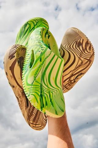 This time, both brands put their creative juices together to reimagine the Mellow Clog. The resultant designs are two mesmerizing, cosmic-inspired finishes aptly named “Brown & Bone” and “Celery.” Both iterations wear distinctive linework across their exteriors, spelling out "PALACE" in a repetitive fashion. This aside, Palace's iconic Tri-Ferg logo finds itself on the footbed, while the Crocs signature branding is embossed prominently on the upper, bridging both brand identities seamlessly.