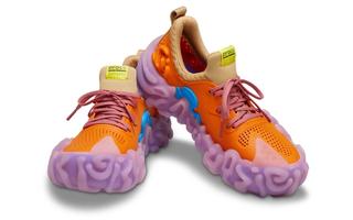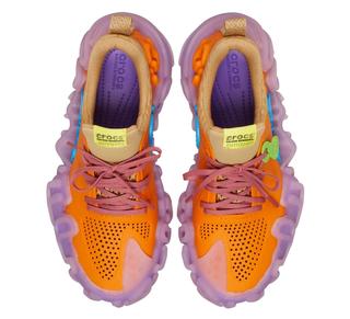 Modeled by Jahlil Nzinga, the impending take on the Crocs Pollex platform's first "traditional" shoe takes on vibrant shades of orange and blue, coupling them with more muted beige and purple tones. The result is a pair that Bembury has dubbed "Apricot."
