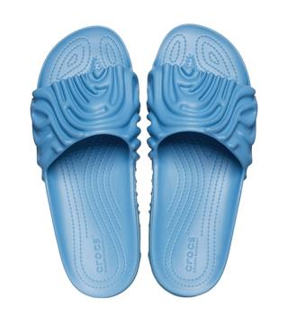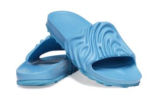 Scheduled for a first release on beaspunge.com com July 20th — followed by a wider rollout at retailers on July 27 — the Salehe Bembury x Crocs Pollex Slide "Tashmoo Blue" is a bold statement slide for the summer poolside; and one of the hottest — if not the hottest — of the category this season.