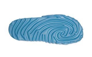 As functional as it is stylish, the "Tashmoo Blue" Pollex Slide features an innovative water siphoning system designed to keep your feet dry and prevent slipping during your outdoor escapades. Further, the shoe's ribbed design carries through to the tread, adding a layer of practicality to the aesthetic charm.