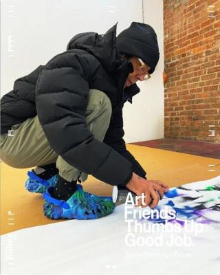 Salehe Bembury has unveiled his latest venture with Crocs, titled "Art Friends Thumbs Up Good Job."