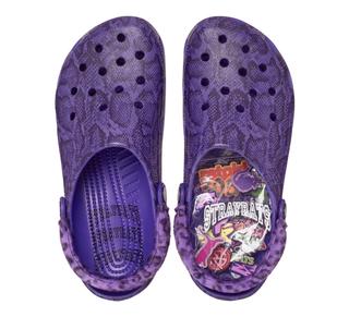 The project features two distinct designs, both wrapped in animal-inspired prints. One pair showcases a tonal purple snakeskin across the Croslite™ upper, while the other opts for a fuchsia faux fur covered in a leopard-reminiscent pattern. Both Clogs don ornate heel straps with the latter pair boasting ratgirl branding. The nod references Stray Rats' women-focused sublabel. A menacing looking rat emblem replaces Crocs' traditional crocodile logo on the hinges.