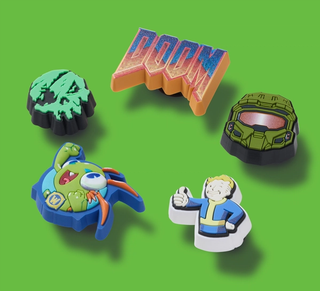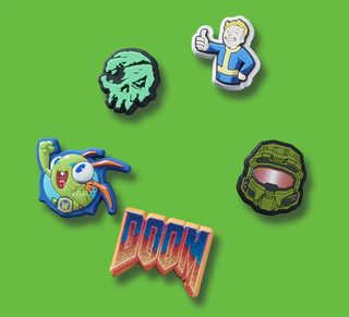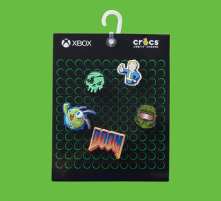 The Xbox-inspired Classic Clog arrives alongside a limited edition Jibbitz™ charm pack. The 5-piece set references titles like Doom, Fallout, and Halo.