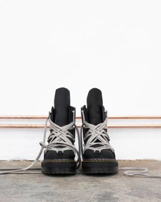 "I thought I invented it, but I only recently realized my mega-lacing is a memory of the boot worn by Joseph Beuys during his 1965 Action entitled ‘How To Explain Pictures To A Dead Hare,’" said Owens when reflecting on his latest work with Dr. Martens. "It was one of the first art moments I encountered that formed who I am today. Isn’t it great to realize the power of what we retail subliminally? That mix of industrial construction, shamanistic ceremony bordering on pagan hallucination is still what keeps me going…"
