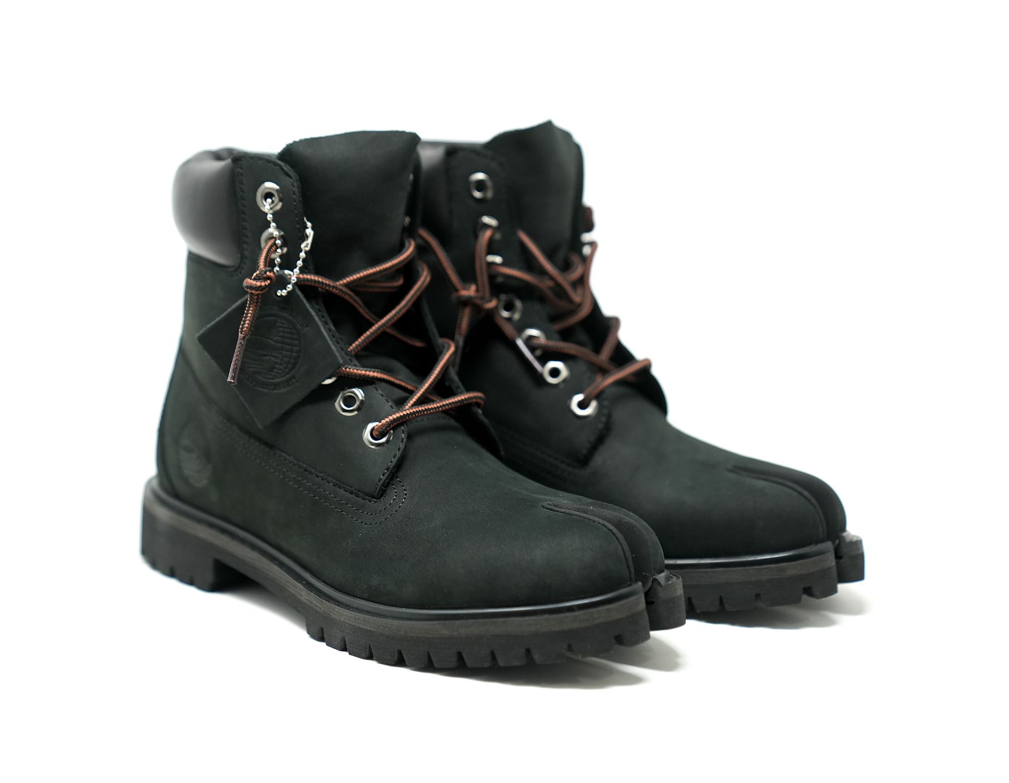 This bold take on the traditional tabi boot stands out with premium nubuck leather, a padded collar for added comfort, and a durable black rubber outsole. The 'SNS World Peace' logo, subtly embossed on the outer heel, adds a meaningful touch to the design.