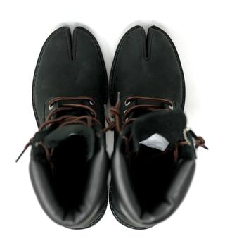 The RicePaddyTabi was first introduced by designer Jonathan Sung Jin Lee, known as RicePaddyDaddyy, back in 2018 during his time at Parsons School of Design. By blending the distinctive tabi toe with a work boot silhouette, Lee’s design challenges cultural perceptions and explores deeper themes, while giving a nod to New York City's iconic work boot and Japan's tabi shoe tradition.