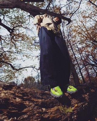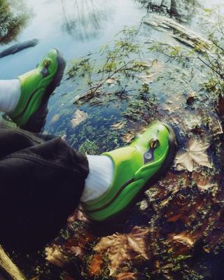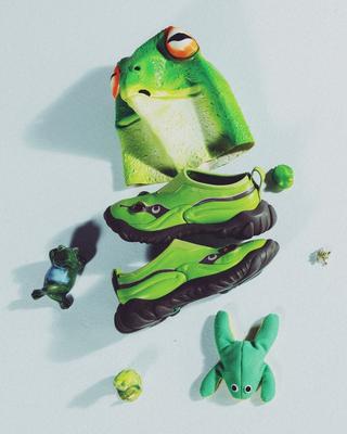 Underfoot, ESENES adds another layer of storytelling. The sculpted grey rubber outsole features ribbing and X-terrain grip pads for traction, extending the amphibian aesthetic while ensuring everyday stability. Hidden inside the sole are translucent green frog embryos, a small but noticeable detail that reinforces the theme.