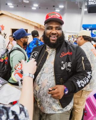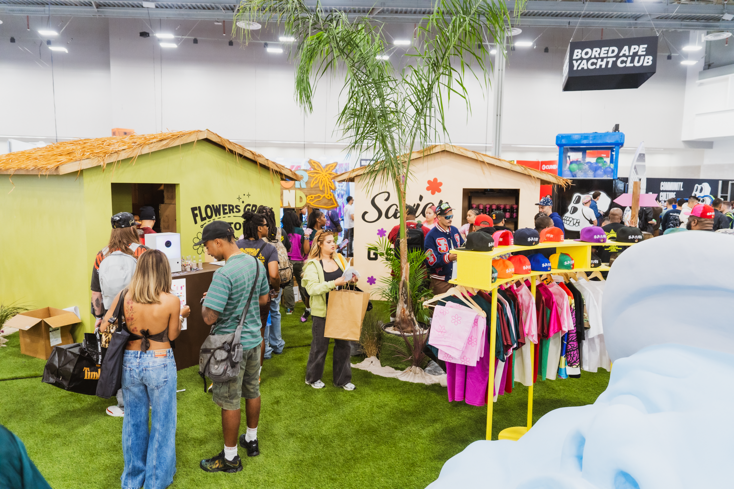 The display extended beyond just visuals — it became an experience. Fans navigated the tropical-inspired space surrounded by lush greenery, textured sand, and floral motifs pulled straight from Tips’ signature “Flowers Grow Uptown” theme. The booth brought together his love for storytelling and streetwear in equal measure, blending craftsmanship and culture into one immersive moment.
