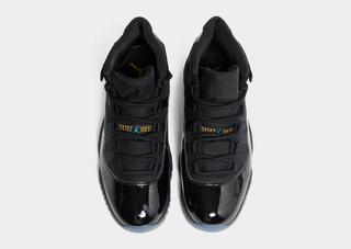Famously inspired by MJ's desire to own a basketball shoe that could be worn with a tuxedo, the Jordan 11's build features a shiny patent leather mudguard and ballistic nylon base. The result is an eye-catching, supportive upper that works in-tandem with the robust sole unit underfoot to perform at the highest level. The "Gamma" retro favors a pitch-dark finish across the bulk of its construction, but branding on the tongue and hind-foot interrupt in eye-catching blue and yellow flair. The icy "Gamma Blue" tone animates Jumpman logos across the sneaker, giving way to the pair's nickname. The semi-translucent outsole underfoot tones things down a few shades, delivering a grayish-blue tint in the process.
