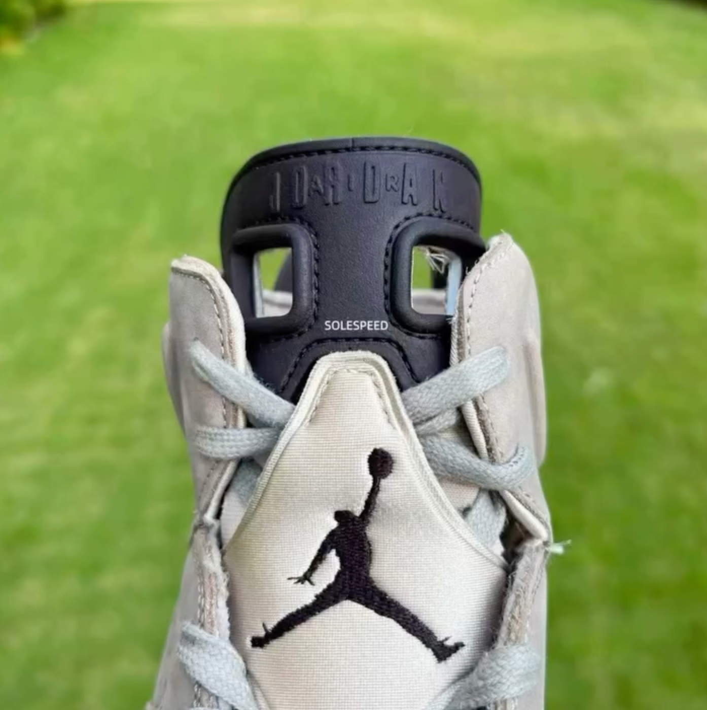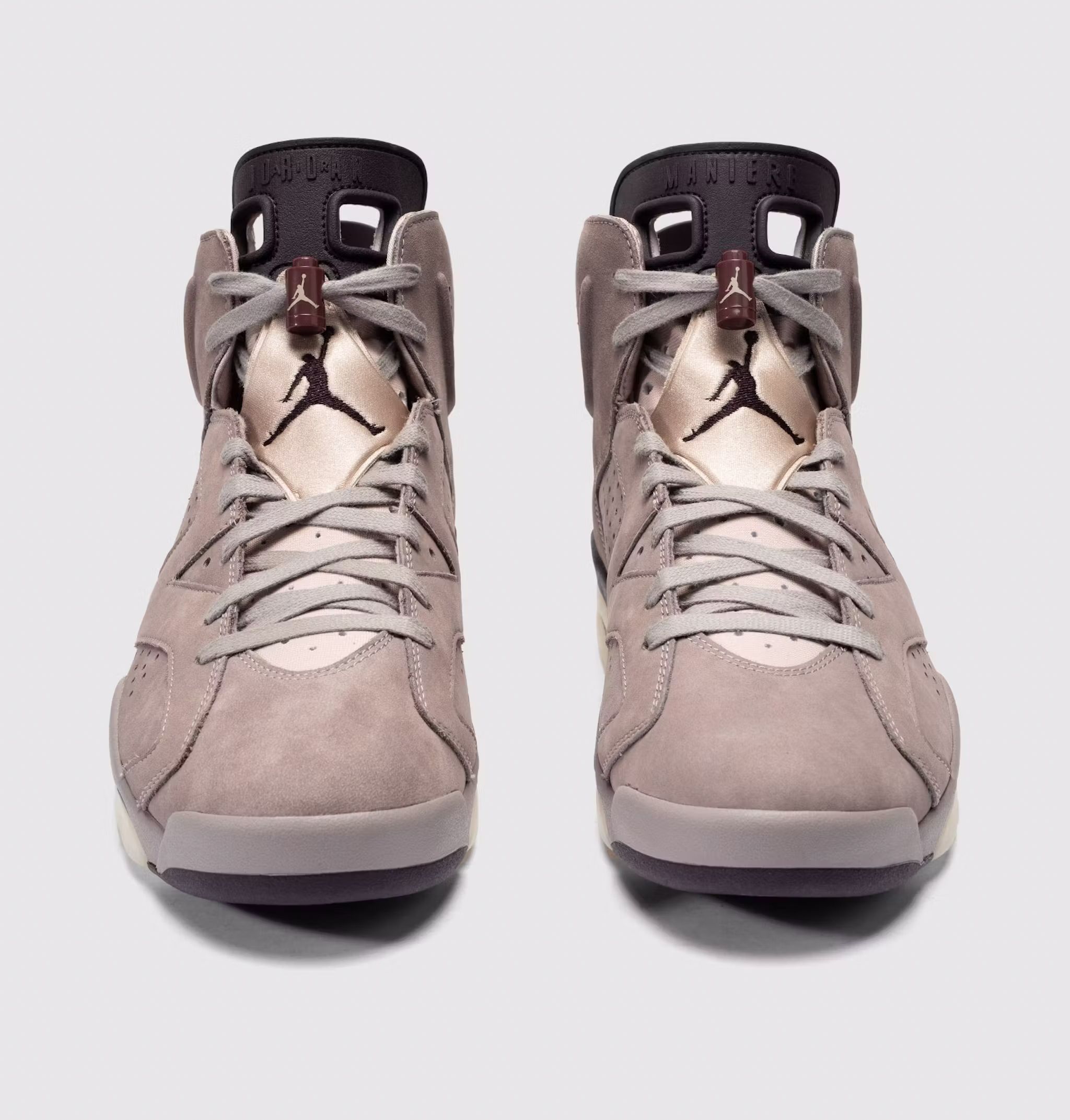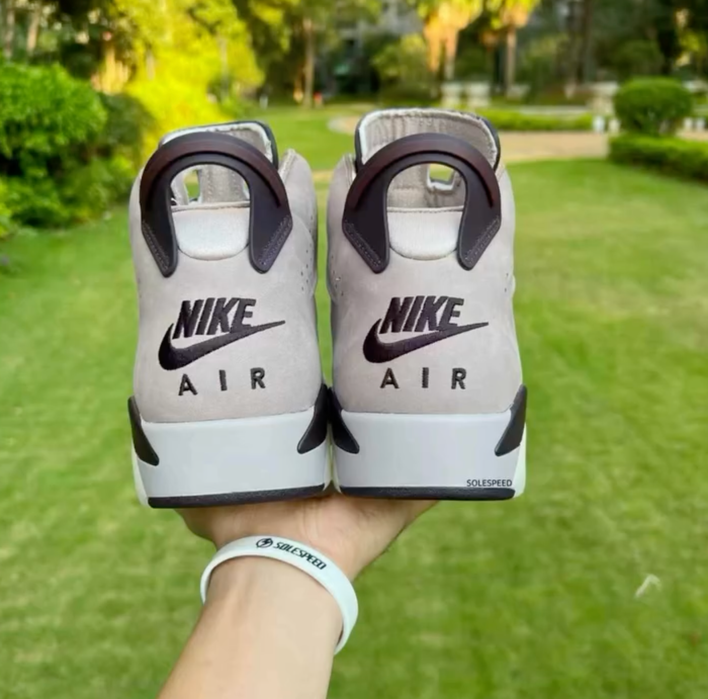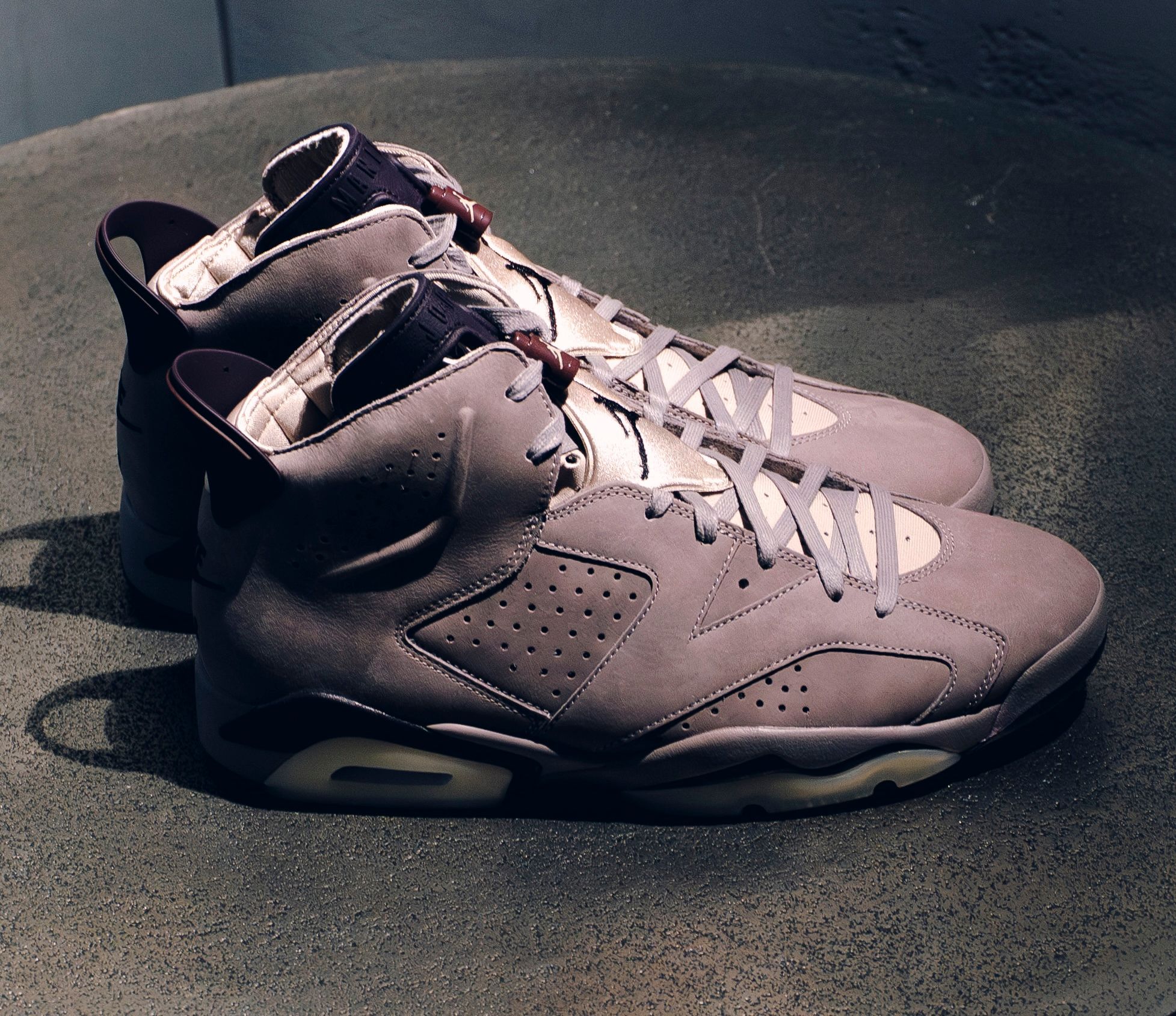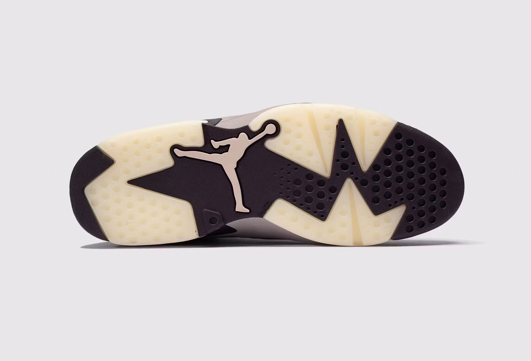 This upcoming pair is dressed in muted taupe nubuck across the upper, delivering a soft yet structured feel. The monochromatic base is accented by darker hits on the heel tab and midsole, while the lace toggle and heel spoiler add subtle contrast. Perforations along the panels and collar retain the AJ6’s original performance roots, while co-branded insoles mark the collaboration.