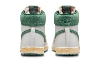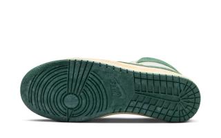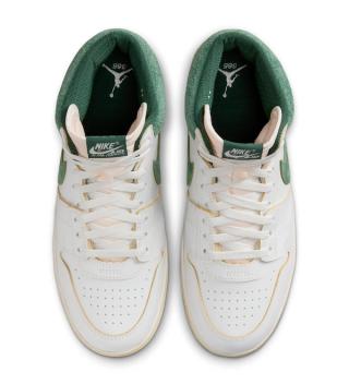 The "Green Stone" edition of the Air Ship PE SP is a testament to the timeless appeal of the Jordan Brand's early days, updated with A Ma Maniere's contemporary aesthetic. The sneaker features a thick-cut, raw-edged "Summit White" leather base as a canvas for the lush "Green Stone" accents. These earthy tones grace the suede Swooshes, collar, and tongue branding, strikingly contrasting the sneaker's clean, white backdrop. Further adding to its refined look is a washed sail midsole, enhancing the shoe's vintage appeal and premium feel.