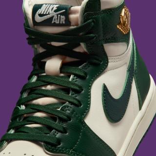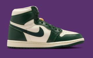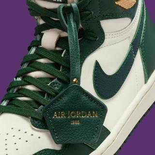 This pair comes dressed in smooth leather, balancing a Sail base with deep Fir green overlays across the toe, eyestays, collar, and heel. Matching green Swooshes and laces drive the theme, while metallic gold Wings logos add a refined pop at the ankle. Nike Air branding keeps things classic on the tongue tags, while a crisp Sail midsole and Fir outsole ground the design. Each pair comes with a set of alternate laces and a special hangtag stamped with “Air Jordan 1985” in gold foil, adding to its collectible appeal.