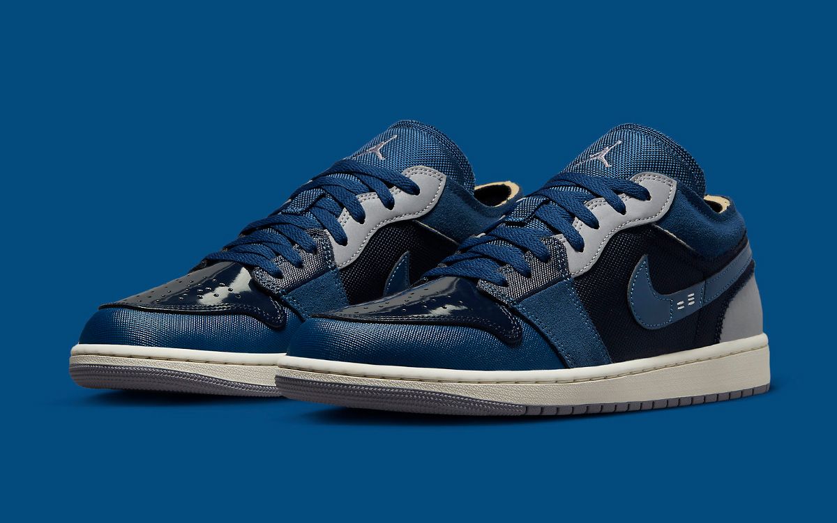 Met with equal amounts of intrigue, disdain, and praise when it was revealed earlier this year, the Air Jordan 1 Low “Inside Out” is undoubtedly one of the most exploratory designs in the models’ recent history. Already arriving in both white and black-based colorways, a third has just surfaced, bringing with it the same schematic previously seen, though this time in navy and grey hues.