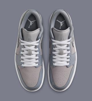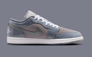 The Air Jordan 1 Mid “Cool Grey” features a white leather upper, with grey nubuck toes and Cool Grey patent leather on the heels, creating a sleek and polished look. The Air Jordan 1 Low “Cool Grey” takes a more uniform approach, with all-nubuck uppers and patent leather overlays, maintaining a refined yet distinct feel. Both pairs are finished with a white and grey rubber tread, completing the design with a clean, balanced look.
