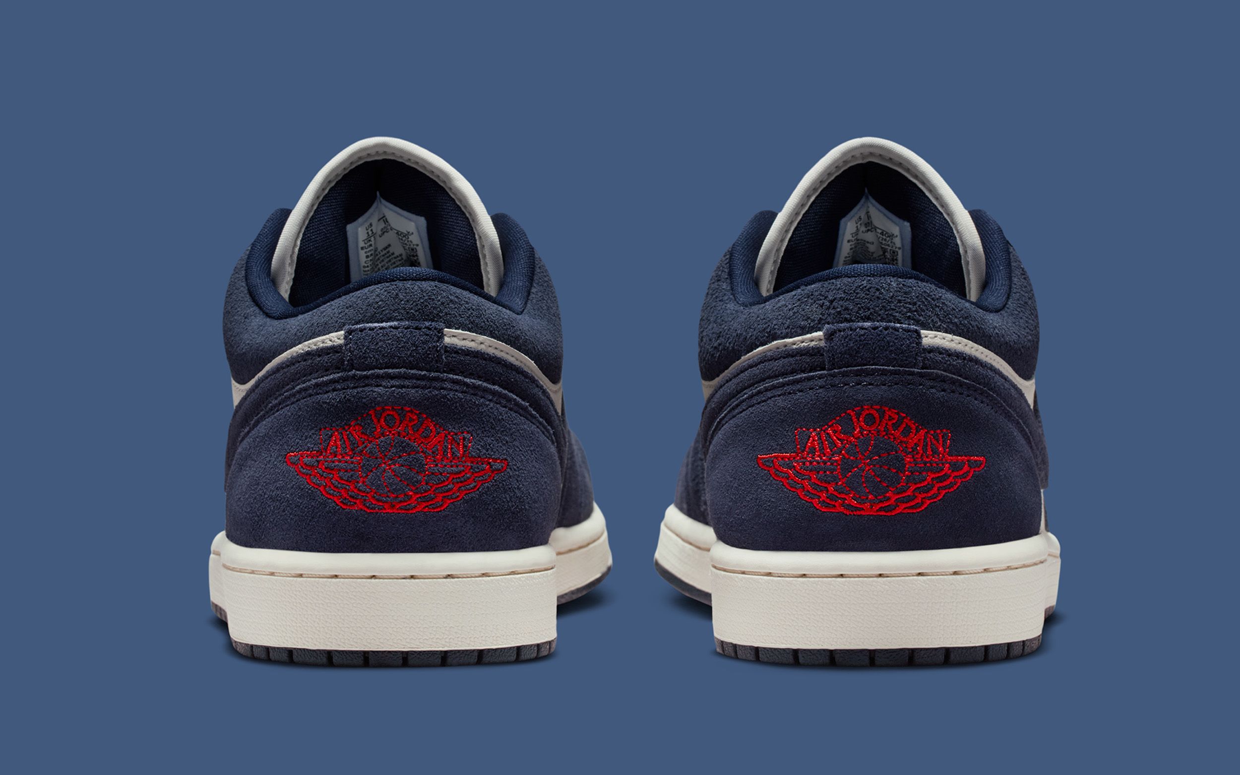 Underfoot, the sneaker maintains the classic Air Jordan 1 Low tooling with a Sail midsole and Obsidian outsole for a balanced, era-consistent look. The result is a pair that fits seamlessly into everyday rotation while offering enough depth and texture to stand out from standard GRs.