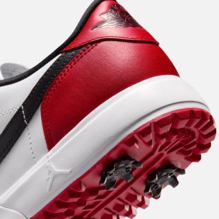 As its "Chicago" moniker suggests, the spiked golf shoe sees a red, white, and black color scheme inspired by the Chicago Bulls' signature tones. Most overlays throughout the upper indulge in ruby-colored flair, while base layers keep things clean in white. Profile swooshes and Wings insignias on the spine deviate in pitch-dark finishes. Lastly, Jumpman logos on the tongue label are accompanied by "Golf" messaging, positioning MJ's on-court legacy with golf.