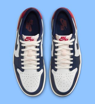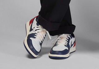The Air Jordan 1 Low OG "Howard University" is a true homage to the university's rich heritage and colors. Here, it's anchored by a clean white upper and bookended by Bison-friendly Midnight Navy and Gym Red at the forefoot and heel, respectively. The former takes on an added mini Swoosh. Completing the look is a Muslin-tinted midsole paired with a navy rubber outsole.