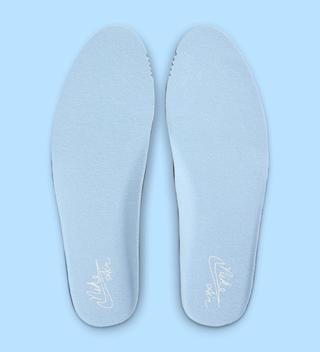 One of the standout touches on this colorway is the chenille Wings hangtag, rendered in white and Psychic Blue to echo the shoe’s palette. The plush stitched texture adds a bit of throwback charm — a small but thoughtful detail that elevates the presentation. Up top, a woven tongue label features cursive Nike Air branding, adding an extra layer of retro appeal to the model.