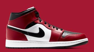 The pair keeps its now-familiar layout intact: black leather overlays on the toe box and eyestays, clean white quarter panels, and bold varsity red wrapping the heel and collar. A black nylon tongue and Swoosh complement the layout, while a white midsole and black rubber outsole finish the classic look. The Wings logo on the collar and Jumpman branding on the tongue remain untouched from the 2020 version.