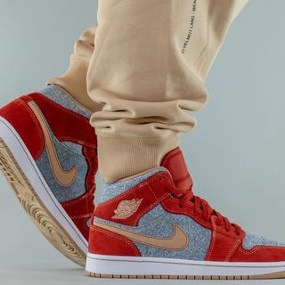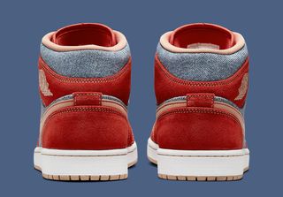 Any old head will instantly recognize the likeness, with a near-identical color blocking surfacing on this new release. While denim uppers, red overlays, contrast-stitched Tan checks, and gum outsoles remain, there are some noticeable take-downs from the premium-constructed collaboration. Notably, there is an absence of any Levi’s branding, indicating that this will be a run-of-the-mill release. Printed elephant print denim uppers revert to a traditional washed denim, while red overlays arrive in suede — a change-up from the Levi’s smooth leathers. They do, however, arrive with a similar gold contrast stitch. The tan Swoosh is almost identical, though its red stitch lines are more refined, while its sole stays true to its inspiration. Other notable omissions include the metallic gold eyestays, heel Jumpman, and jelly Wings logo — the latter replaced by a debossed finish in a golden hue.