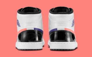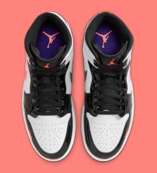 The defining feature of the Air Jordan 1 Mid “Mismatch Swoosh” is its split Swoosh treatment. The lateral side features a Bright Mango Swoosh, while the medial side shifts to Court Purple, creating an intentional visual mismatch that sets each side apart. This dual-color approach is echoed subtly throughout the design, giving the pair a dynamic, left-versus-right identity.