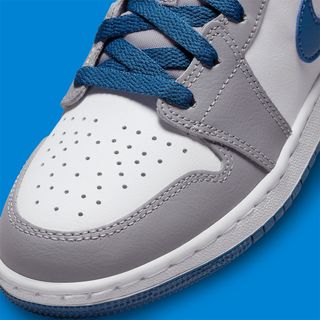 With key colors of white, grey, and blue present, the pack’s Mid simply flips the overlay and Swoosh coloring of the Low. Retaining a bright white base and grey nylon tongue, this release looks to Swooshes of blue and overlays of grey, whilst the aforementioned Low does the opposite. Not only that, but Jordan Brand has also altered the color of the outsole from grey to blue, too.