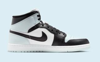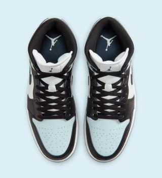 Recently, the silhouette's Mid cut appeared in a "Black/White/Aura/Squadron Blue" ensemble. Reminiscent of special pairs that've launched in the modern Air Jordan era, the style takes after the iconic "Black Toe" look that formed part of the AJ1's original run. Leather panels around the toe, at the quarter area, along the tongue, and around the collar boast pitch-dark finishes that harken back to the past. Forefoot underlays, ankle flaps, and lower heel overlays introduce a titular light blue tone into the mix; the same hue animates the Nike Dunk-reminiscent sole unit.